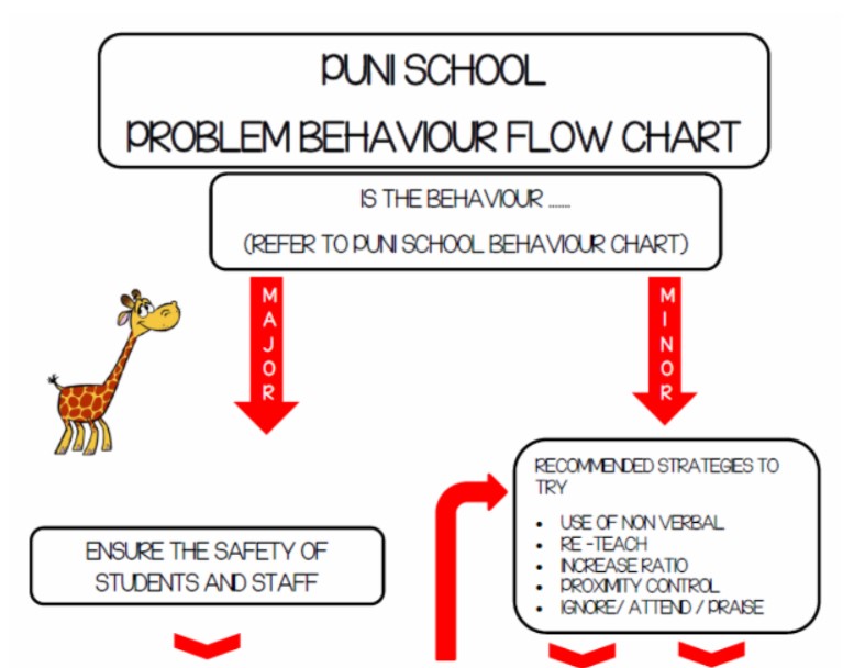 REACH is aspirational and fits within our school symbol the giraffe and all that we do at Puni School. We are following the Positive Behaviour for Learning Programme (PB4L) which emphasizes great behaviour for all so that learning is maximized.